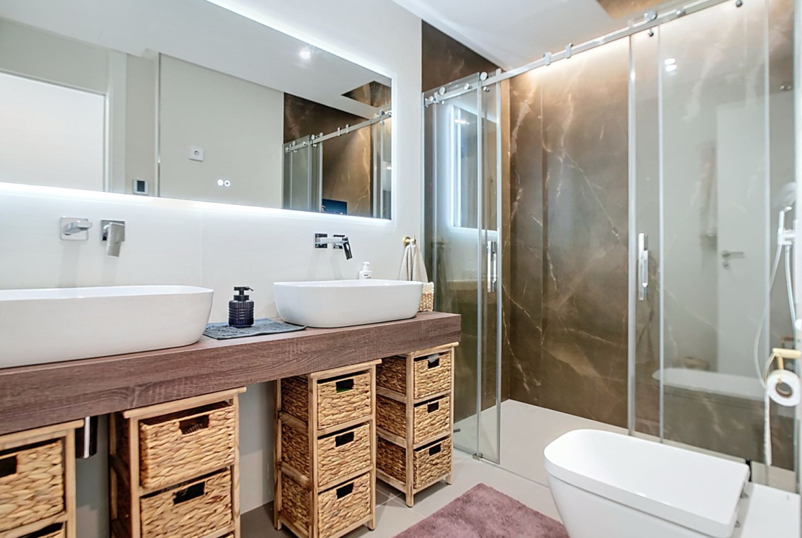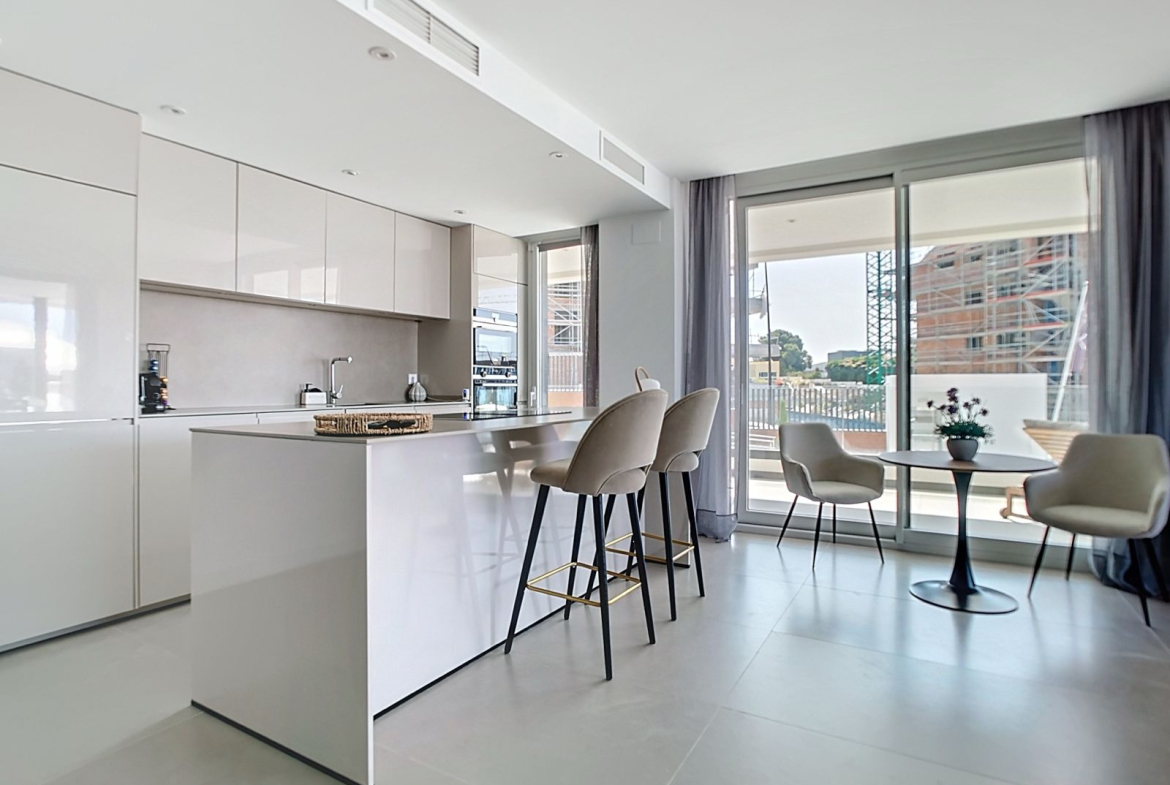 Inside, the apartment stands out for its spacious and bright living room, a fully equipped modern kitchen, and generously sized bedrooms, including a master suite with an en-suite bathroom. High-quality finishes, such as ceramic floors and high ceilings, create a comfortable atmosphere. It also has a covered terrace, perfect for relaxing outdoors at any time of year.
