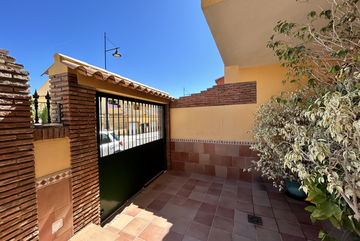 Spacious semi-detached house for sale located in the central area of Los Pacos, Fuengirola. The house has 4 bedrooms, 2 terraces, 3 bathrooms, a guest toilet, an entrance porch, an interior patio, and a private parking space.
